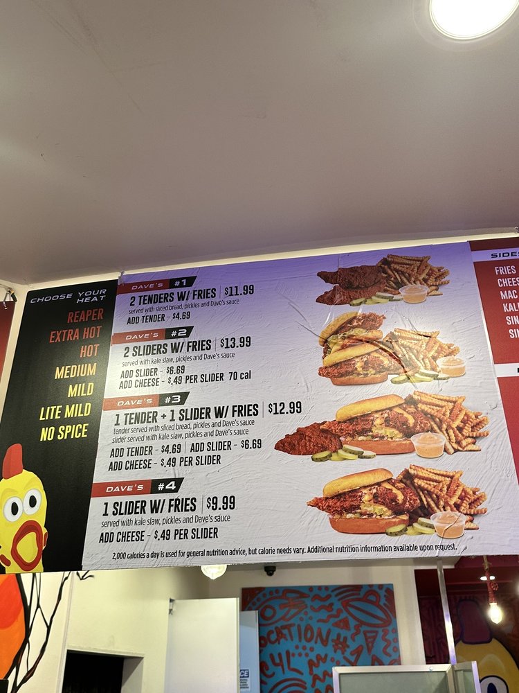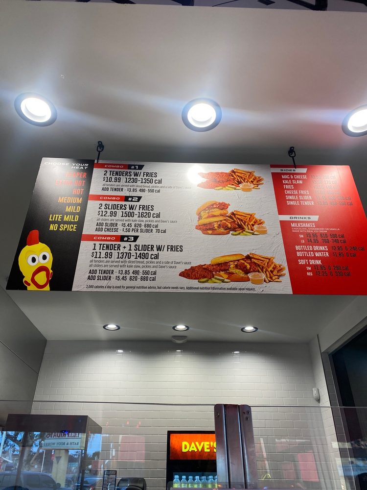 Welcome to Dave’s Hot Chicken, a popular chicken shop in Los Angeles known for its halal offerings. The menu boasts a variety of options, including the Feed A Crowd hot box with tenders or sliders, cauliflower-based dishes under Dave's NOT Chicken, and refreshing drinks like bottled water and soft drinks. Customers rave about the generous portions, flavorful chicken sandwiches, and perfectly crispy fries. The service is fast, the ambiance is hip and trendy, and the staff is always friendly and accommodating. Whether you're a fan of spicy food or just craving a satisfying meal, Dave’s Hot Chicken is a must-visit spot. Whether it's your first time or you're a returning customer, the experience at Dave’s Hot Chicken is sure to leave a lasting impression with its delicious food and welcoming atmosphere.
